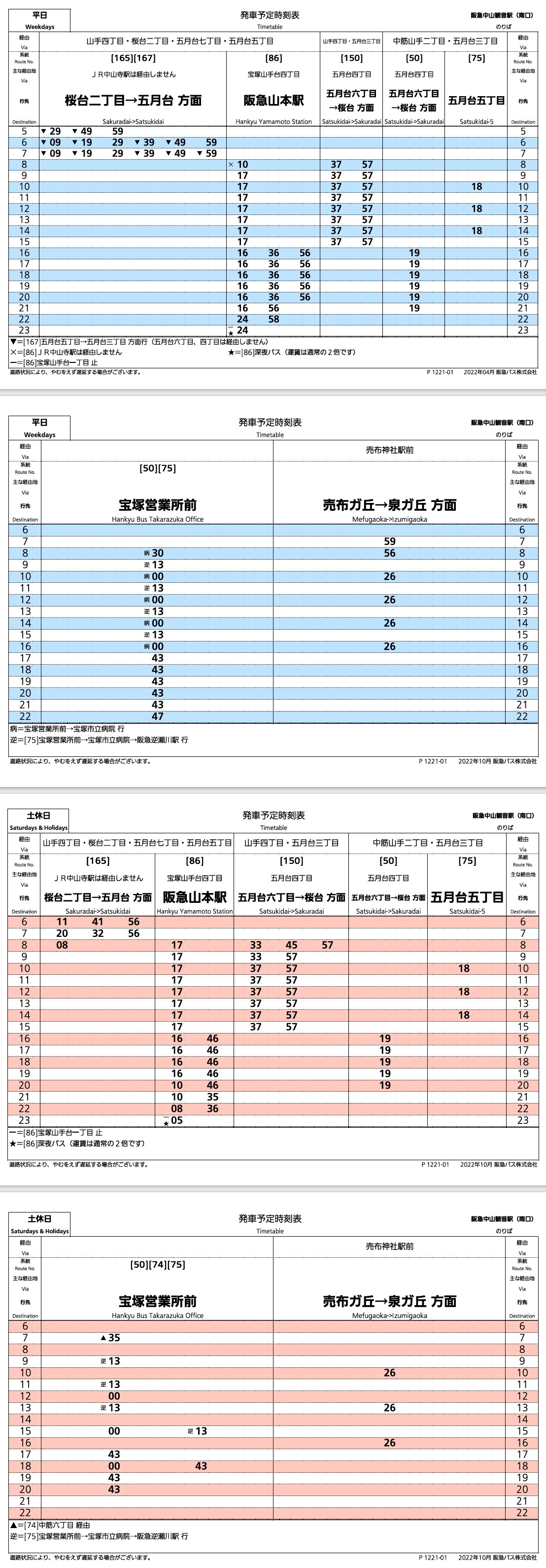 阪急 中山観音駅南口発 バス時刻表