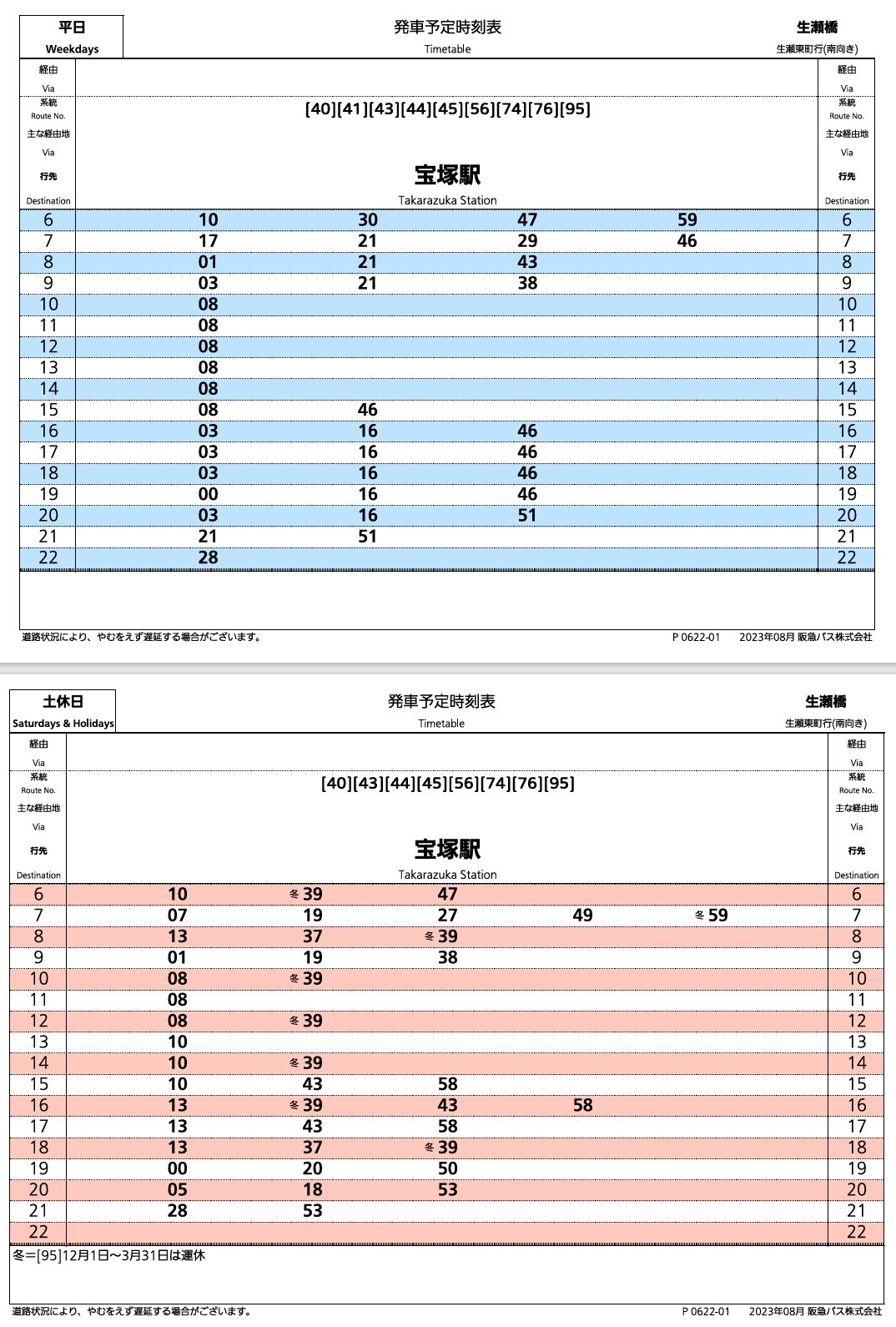 生瀬駅 バス時刻表
